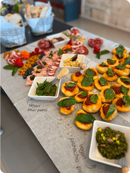 Original Italian cuisine – fresh, high-quality, and prepared with love. From antipasti to tiramisu, from homemade pizzette to delicious variations of antipasti. We bring the Dolce Vita directly to your celebration! We can deliver everything ready-made, or cook live on-site with a show character. Perfect for everyone who loves Mediterranean enjoyment.
